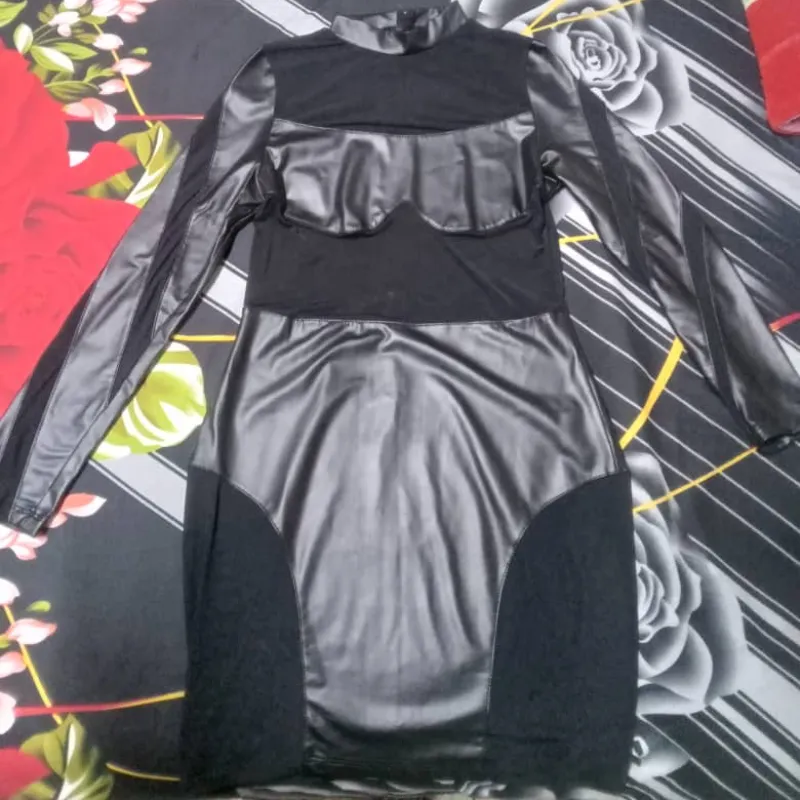 Vestido negro de mallas y engomado