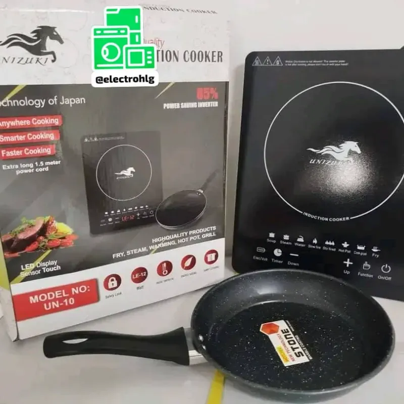 • Marca: Unizuki • Potencia de 1200W • Pantalla digital • Placa de cristal de alta calidad • Control táctil • Voltaje: 110V - 50/60Hz • Garantía: 1 semana