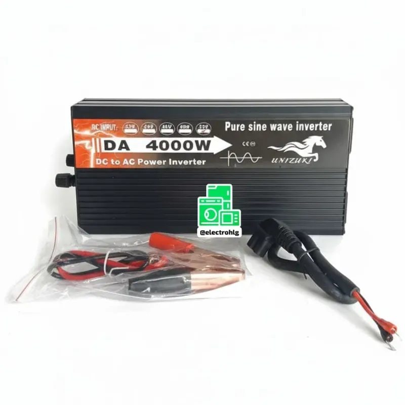 • Marca: UNIZUKI • Onda Senoidal Pura • Para baterías de litio de 72V • Puede ponerlo al toma por donde carga la motorina o triciclo • Puede con todos los equipos 110V • Incluye cable para ponerlo a la motorina o triciclo • Este equipo tiene el desempeño de una planta grande y es varias veces más potente que los inversores de 12V o 24V que se conectan a las baterías del carro • Sin garantía, se le prueba al cliente