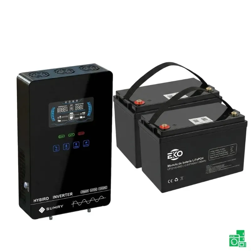 Inversor Híbrido 110V 4kW SUMRY + 2 Batería LiFePO4 12.8V 100Ah EKO