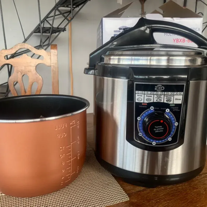 • Marca: EKO • Potencia: 1000W • Capacidad: 6 Litros • Reloj de 90 minutos • Función de olla arrocera y de presión • Cacerola de aluminio • Voltaje: 110V/60Hz • Incluye: cuchara plástica, taza para medir y junta de repuesto • Garantía: 15 días