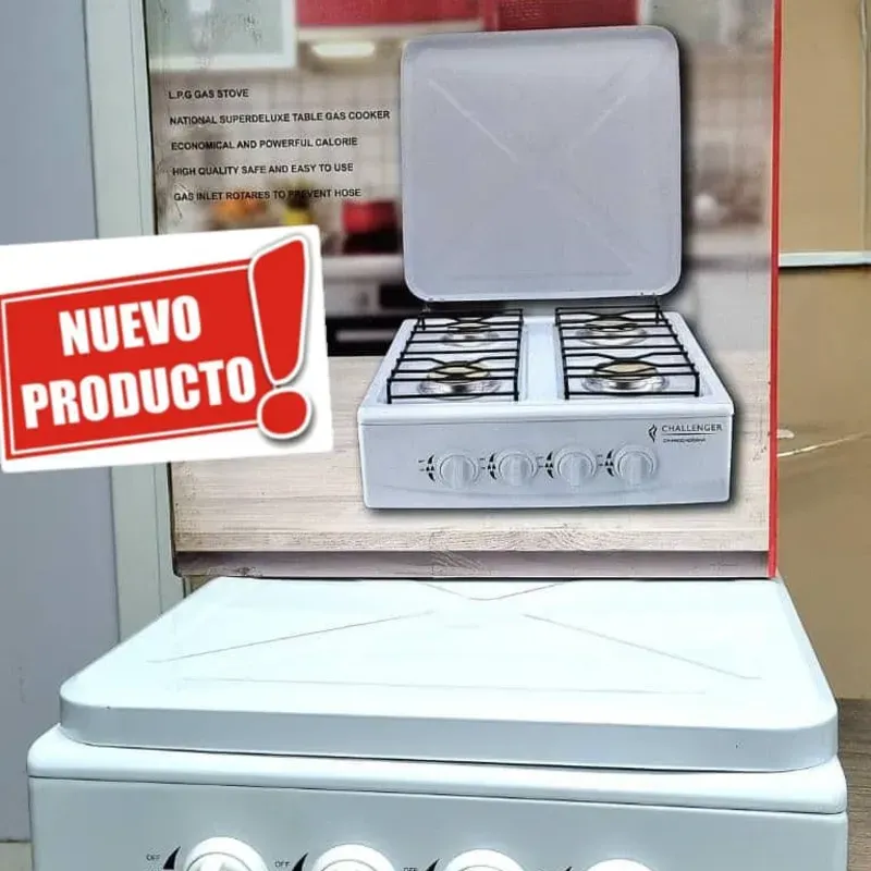 Cocina CHALLENGER de 4 hornillas de meseta con tapa de protección
