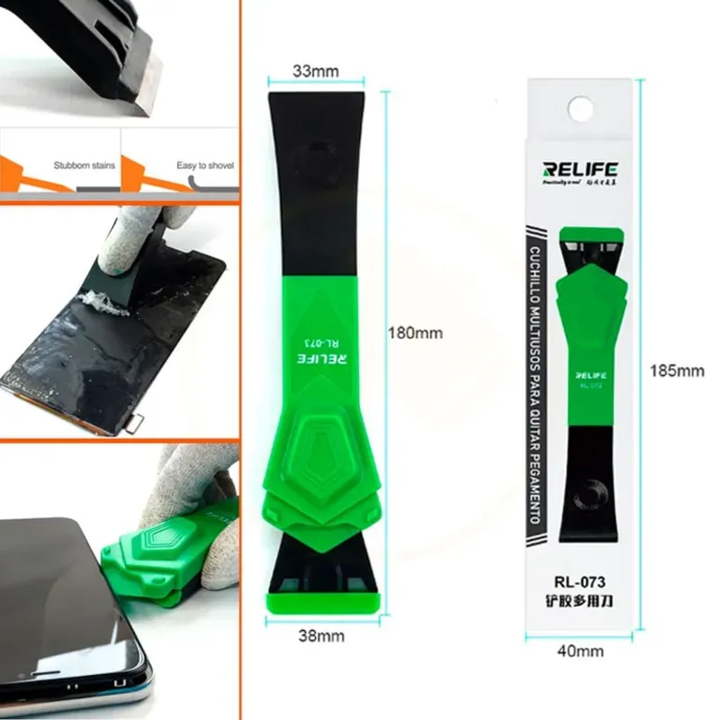 Espátula Multipropósito Relife RL-073 es una herramienta de apertura y manipulación diseñada para reparación de dispositivos electrónicos, smartphones, tablets y consolas. Con puntas intercambiables y mango antideslizante, permite realizar palanca, corte y desconexión sin dañar componentes. ¡Versatilidad y seguridad en una sola herramienta! 🛠️📱