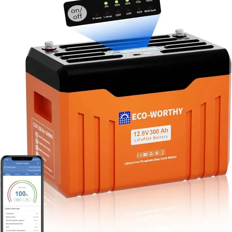 Batería de Litio ECO-WORTHY LiFePO4 12.8V 300Ah (3.8kWh)