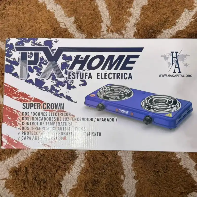 Optimiza tu forma de cocinar con la estufa eléctrica PX Home. Equipada con dos fogones independientes, esta unidad te permite realizar múltiples preparaciones simultáneamente con total seguridad. Su tecnología de calentamiento rápido y su diseño de fácil limpieza la convierten en una opción indispensable para quienes buscan funcionalidad sin complicaciones. El modelo Super Crown destaca por su durabilidad y su capacidad de adaptarse a cualquier superficie plana con estabilidad total.