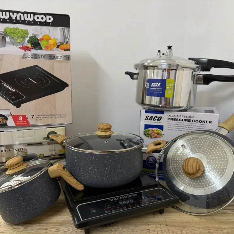 - juego de cazuelas para inducción (6piezas) - 1 sartén- 1 olla-1 jarro -3 tapas