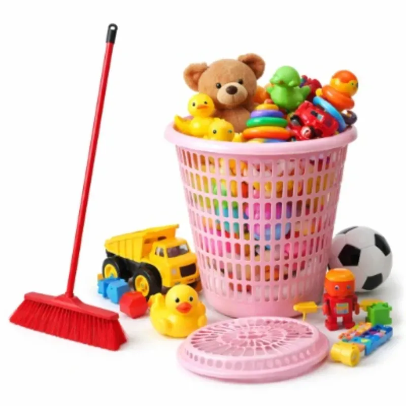 CESTO PLÁSTICO MULTIUSO CON TAPA +ESCOBA