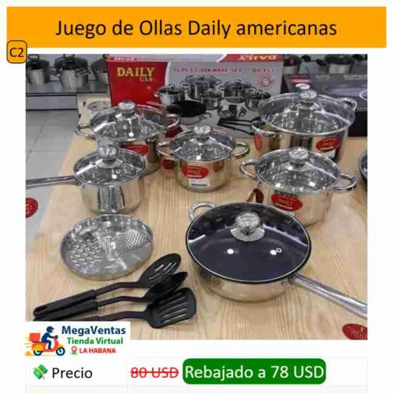 Pagos: USD, EUR 1×1, CUP, ZELLE Acero inoxidable 5 ollas 1 sarten Accesorio de ralladura y cucharones