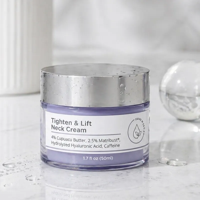 Crema especializada para la zona del cuello y escote, formulada con manteca de cupuaçu (4%), Matribust™ (2.5%), ácido hialurónico hidrolizado y cafeína. Esta combinación trabaja en sinergia para hidratar profundamente, mejorar la elasticidad y aportar efecto tensor visible, ayudando a combatir la flacidez y los signos de envejecimiento en una de las zonas más delicadas de la piel.