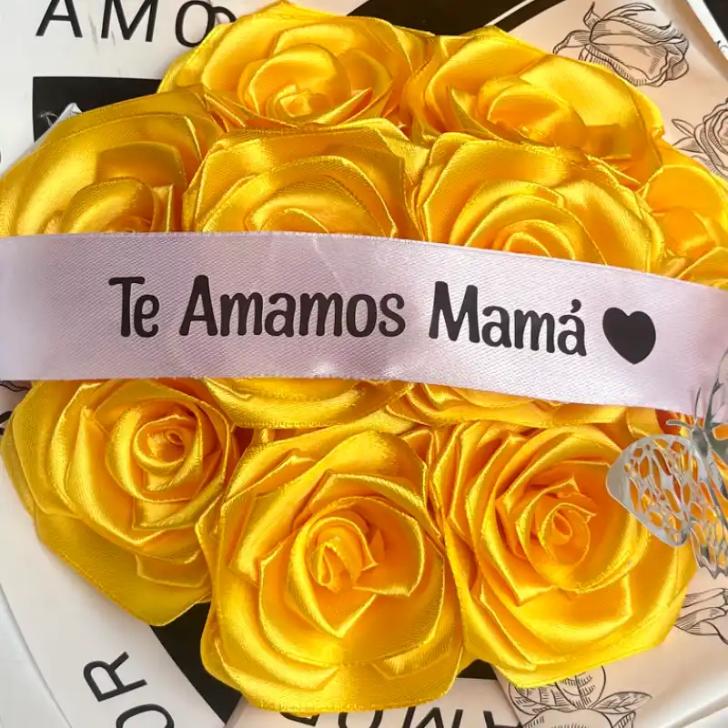 Se le pone la frase que desee ( siempre y cuando el tamaño de la frase esté acorde con el tamaño del ramo )
