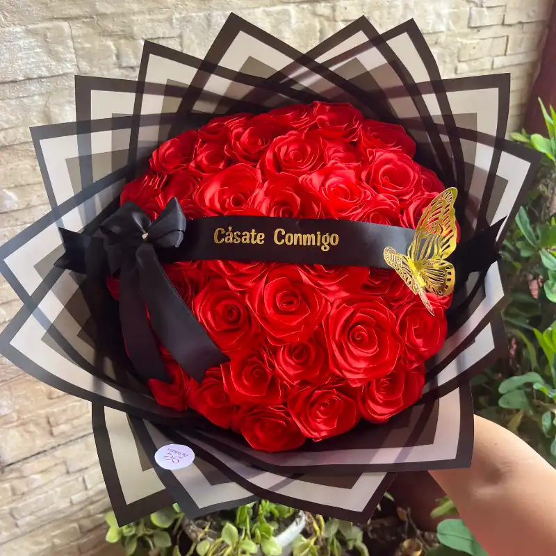 Ramo buchón de 40 rosas con frase personalizada y lazo