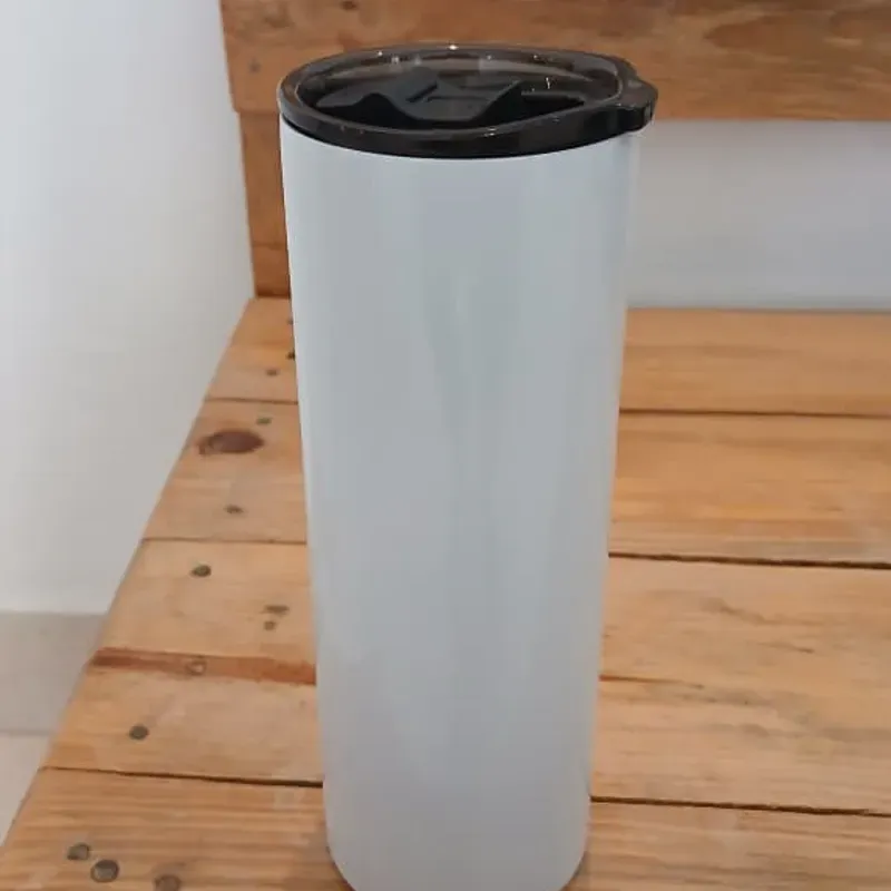 Thermo Skinny sublimable de acero inoxidable blanco, 600 ml sin asa. Diseño elegante y resistente, ideal para conservar bebidas frías o calientes con estilo y practicidad.