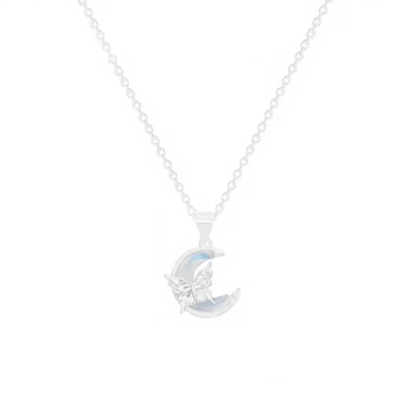 Cadena plateada de acero inoxidable con dije de luna