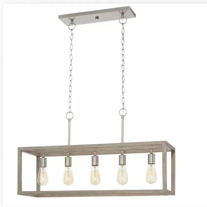Cuenta con 5 socket para bombillo E27. Cuelga 1.5 metros del techo. Material aluminio