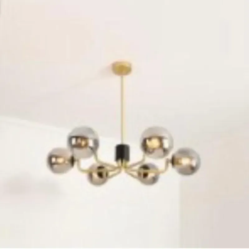 Cuenta de 6 sockets para bombillos E27. Dimensiones: altura 1metro. Material aluminio y cristal.