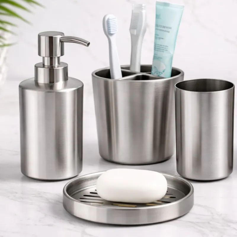 Juego de baño de 4 piezas. Material acero inoxidable