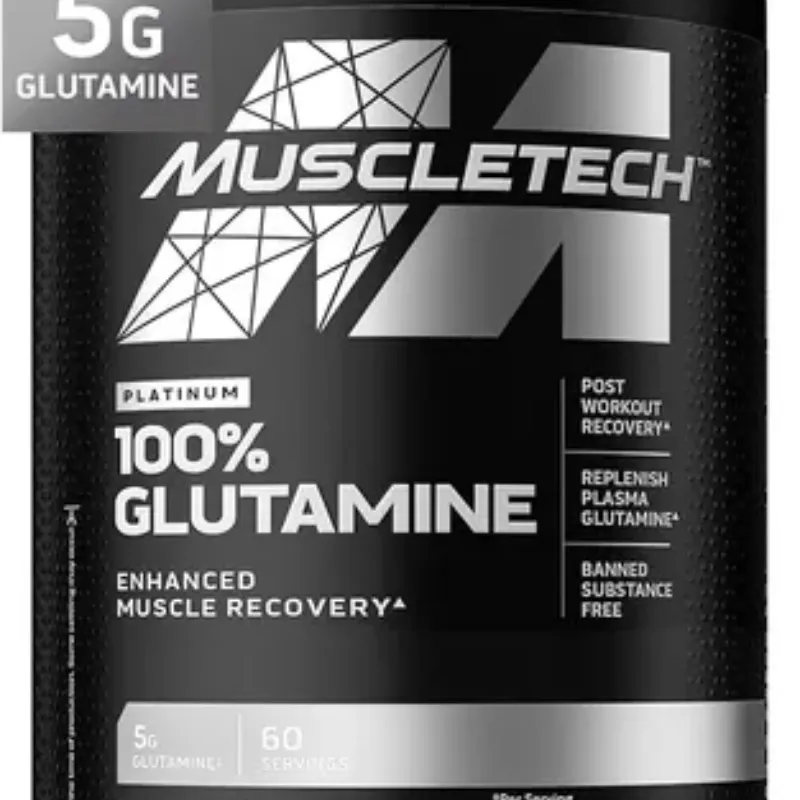 Para el metabolismo y la recuperación muscular: El polvo Platinum 100% Glutamine de MuscleTech repone lo que se pierde durante el ejercicio intenso.