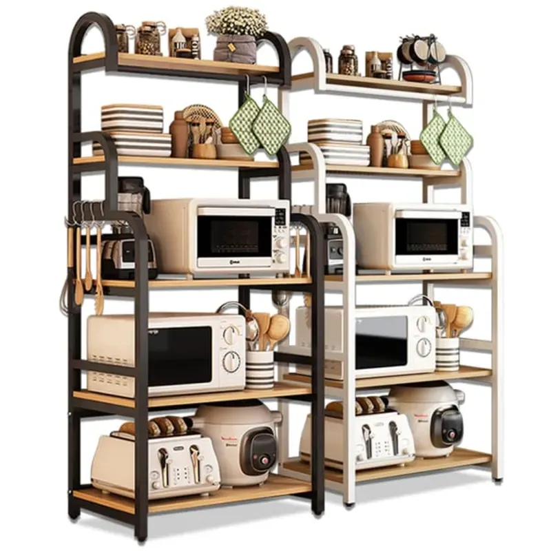 Material de alta calidad: el soporte de microondas de cocina con almacenamiento está construido con acero galvanizado fuerte tratado con pintura de alta temperatura. La superficie lisa es fácil de limpiar. La partición es tablero de partículas, resistente a la deformación y al agrietamiento con una superficie impermeable, alta temperatura y buena capacidad de carga.