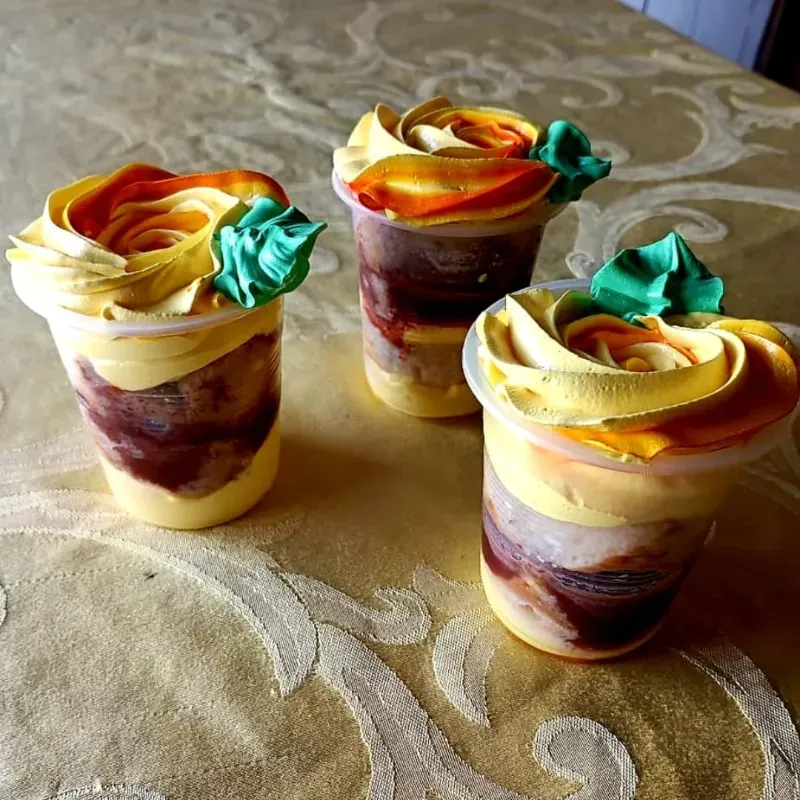 Vasos con masa mojada en leche condensada y mermelada de guayaba