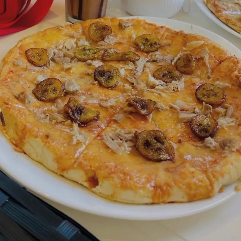 Queso de su preferencia+plátano frito+cerdo+cebolla