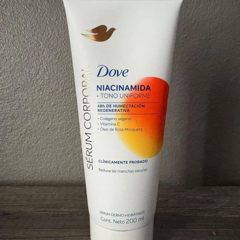 Niacinamida + Uniformizador iguala el tono de la piel al tiempo que restaura su luminosidad natural. El Sérum Hidratante Corporal Dove Niacinamida + Uniformizador está indicado para pieles con manchas oscuras y seca.Su fórmula avanzada hidrata profundamente y actúa en sinergia con la piel, ayudando a restaurar su tono natural y luminosidad.Contiene activos de alto rendimiento como Colágeno Vegano, que como Colágeno Vegano, que promueve firmeza y sostén para la piel;