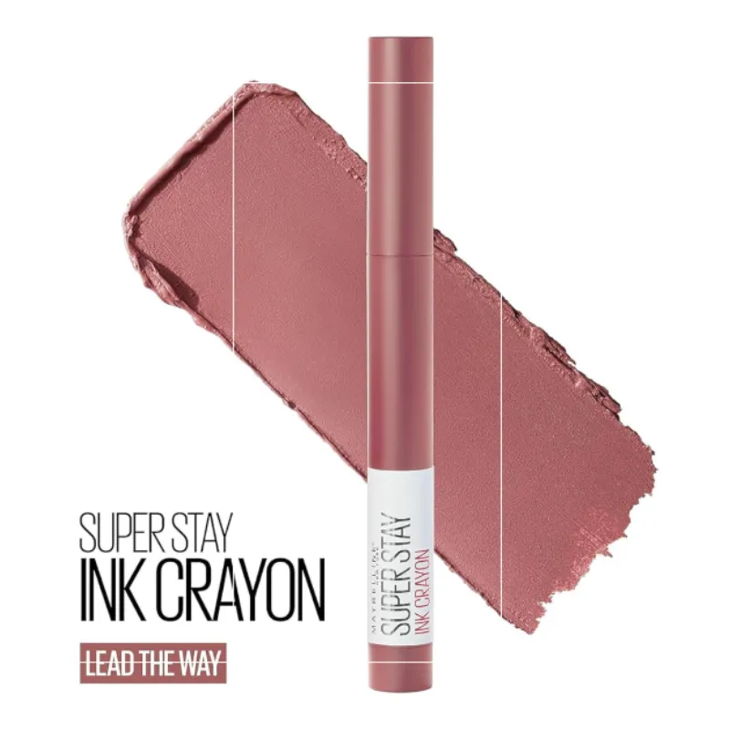 Maybelline Super Stay Ink Crayon Lápiz labial Maquillaje, lápiz labial mate con punta de precisión con sacapuntas integrado, larga duración de hasta 8 horas, Lead The Way, rosa beige, 1 unidad