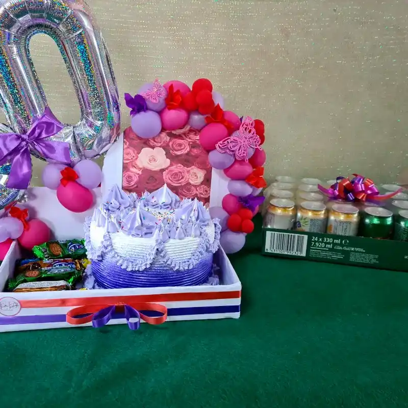 Caja con dulce , variedad de confituras , 12 cervezas y 12 refrescos