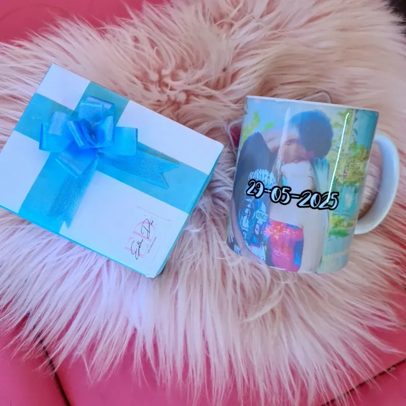 Caja pequeña, de 10 a 12 fotos más una taza personalizada a su gusto