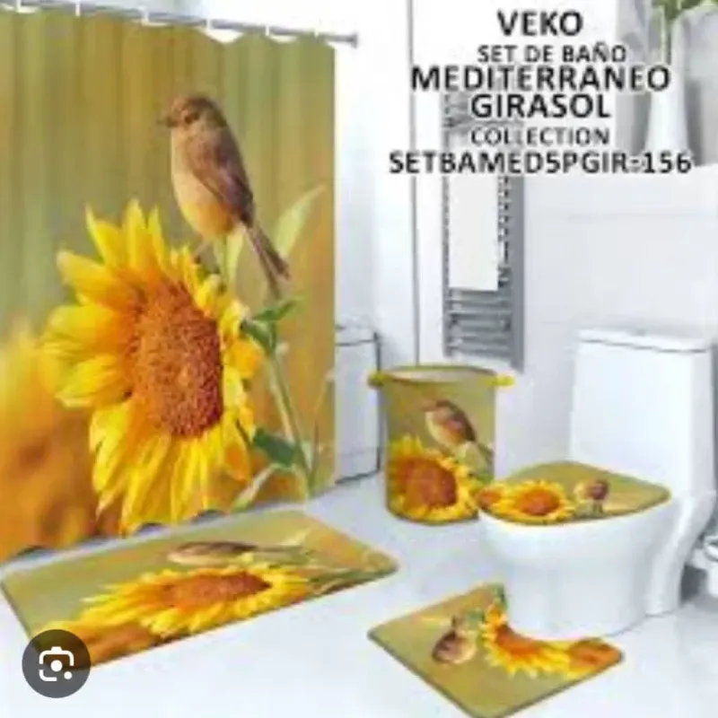 Set de cortina de baño en 3D y juego de alfombras Incluye: 1 cesto para la ropa sucia 1 cortina antimoho ( con argollas plásticas) 1 alfombra de 40*60 cm 1 alfombra para delante de la tasa 1 forro para la tapa de la tasa