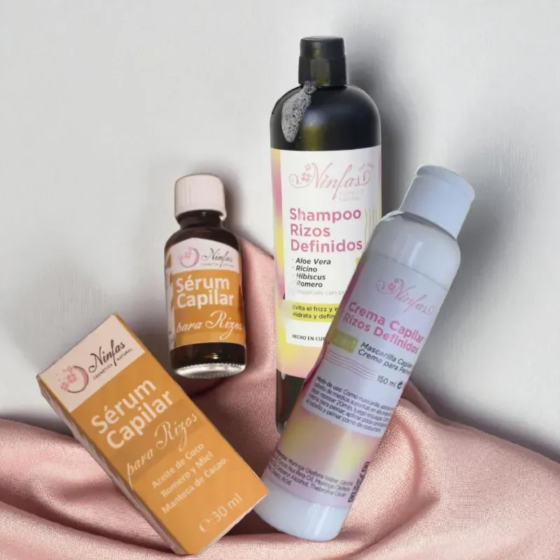 Modo de empleo: Aplicar el shampoo sobre el cuero cabelludo mojado y lavar frotando con la yema de los dedos en forma circular. Enjuagar con abundante agua. Escurrir el exceso de agua. Aplicar unas gotas del serum capilar en la palma de la mano, frotar y luego distribuir homogéneamente por los largos del cabello. Aplicar la crema definidora y estilizar como se prefiera. La crema también se puede utilizar como tratamiento acondicionador, en ese caso se aplicaría luego del shampoo, de medios a puntas, dejar actuar 20 minutos y enjuagar.
