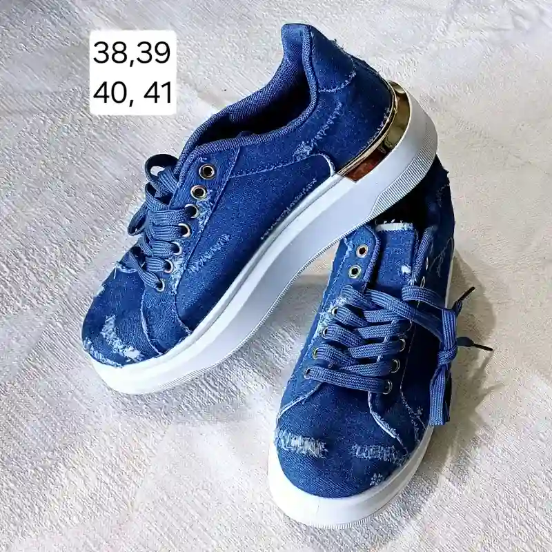 Tenis de lona de mezclilla con suela de plataforma mediana. Excelente calidad.