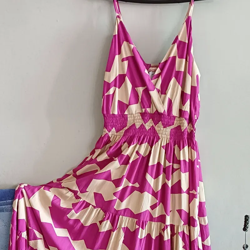 Largo falda can can de tirantes color fucsia talla l/xl tejido fresco.