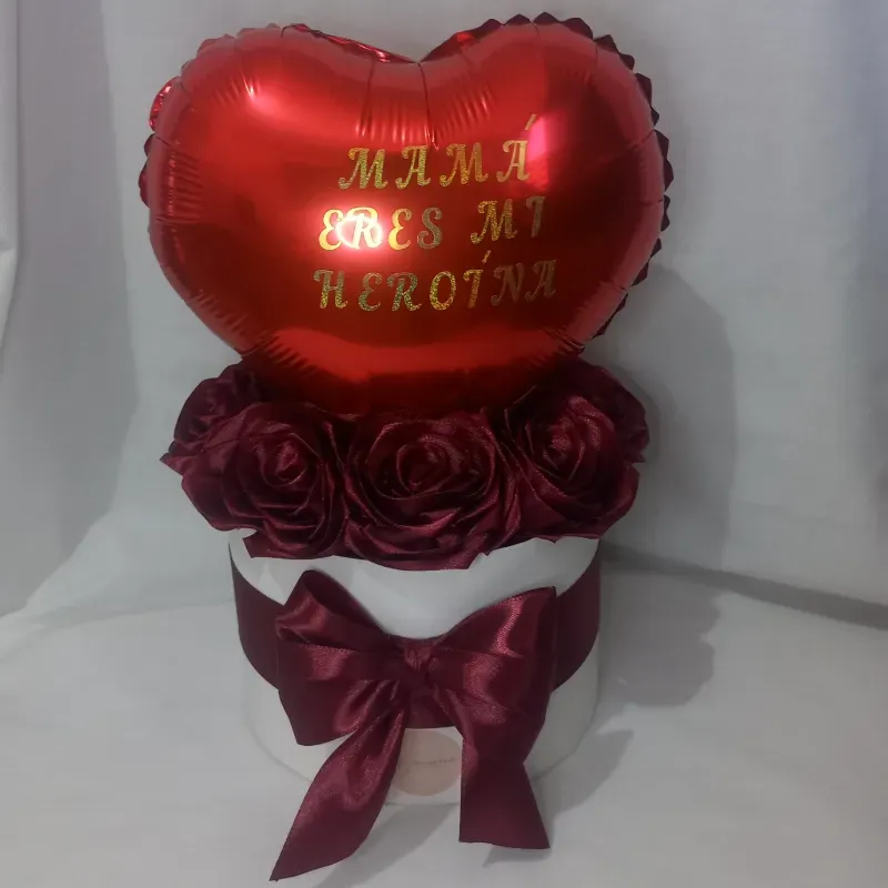 Incluye 8 rosas, globo personalizado y cajita decorada.