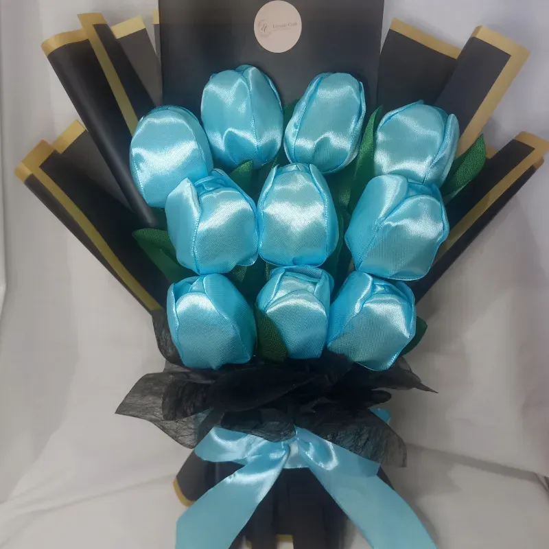 Incluye 10 tulipanes, envoltura y lazo.