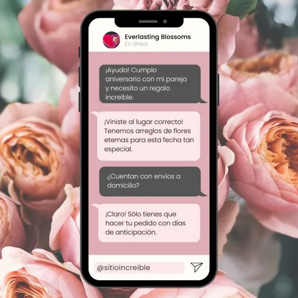 Servicio personalizado de flores eternas, donde cada creación es única y diseñada según los gustos de mis clientes. Puedes elegir entre una amplia variedad de colores tanto para las flores como para las envolturas, asegurando que cada ramo refleje tu estilo y la ocasión especial que desees celebrar. ¡Haz tu encargo y sorprende a esa persona especial con un regalo que perdurará en el tiempo!