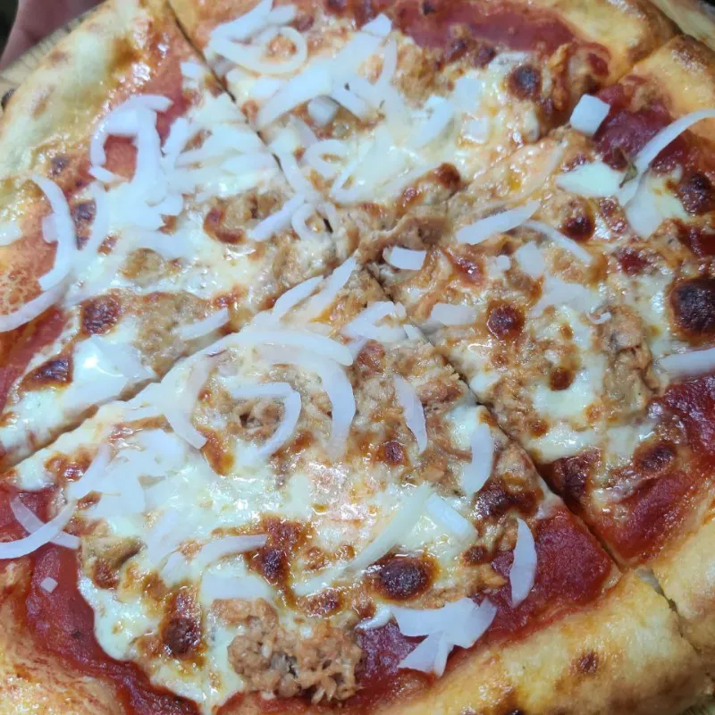 Tomate, mozzarella, atún, cebolla y aceite de oliva