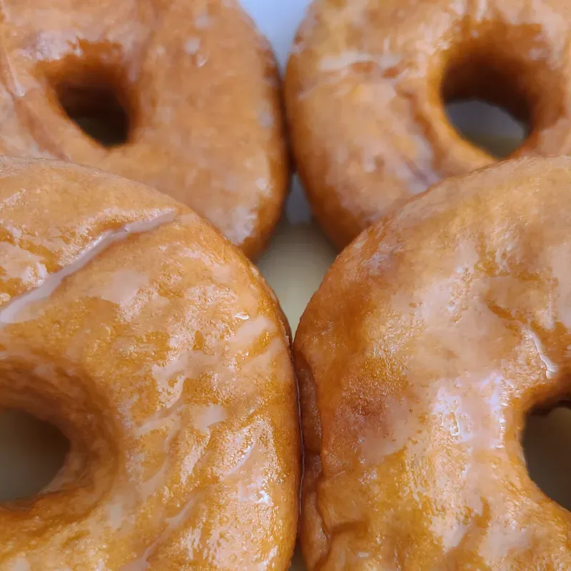 Cajita de 4 donas súper esponjosas y cubiertas de leche condensada