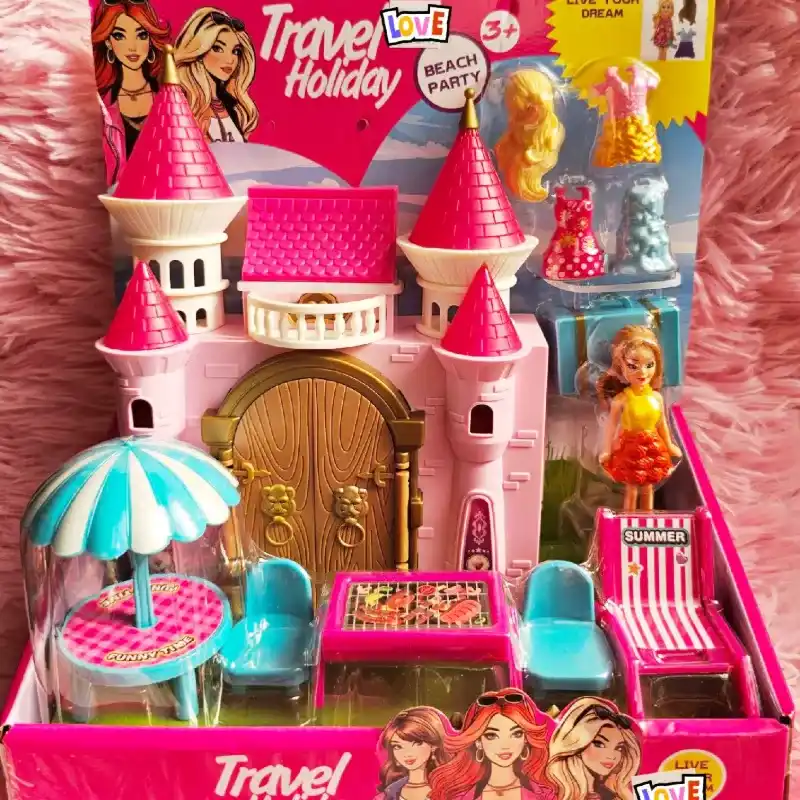 Castillo + muñeca + accesorios 🧳🏰⛱️
