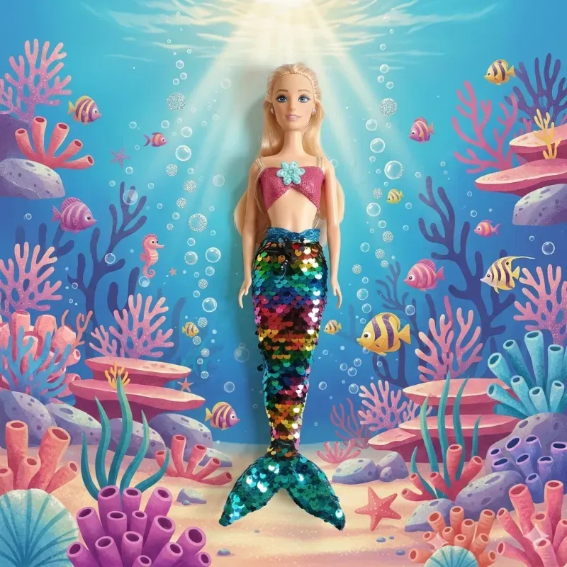 🧜♀️🫧🌊🐚 🩵 Muñeca sirena con cola de lentejuelas reversibles y piernas engomadas debajo. 🩵 Incluye accesorio para el cabello de la muñeca 🩵 Ideal para niñas que aman el mar, la fantasía y las aventuras bajo el agua.