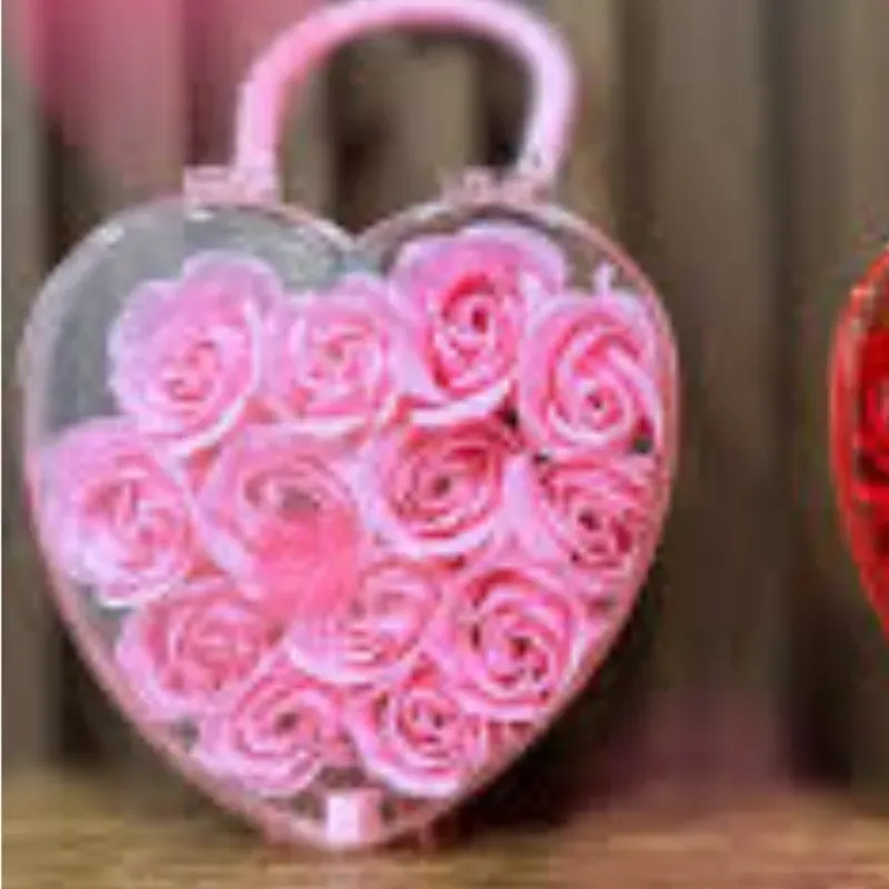Hermosa cajita transparente en forma de corazón, rellena con delicadas rosas decorativas 🌹✨