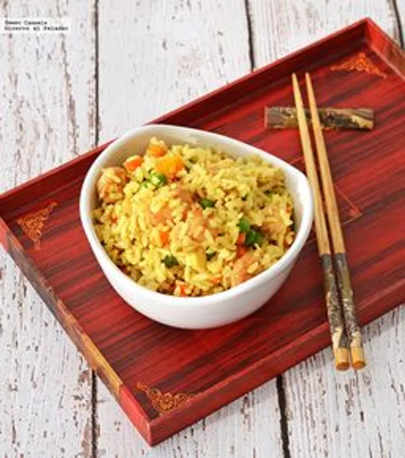 Arroz frito tradicional chino con curry