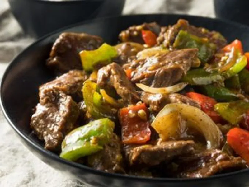 Es un delicioso platillo preparado con carne de res, previamente marinado y luego salteado con vegetales.