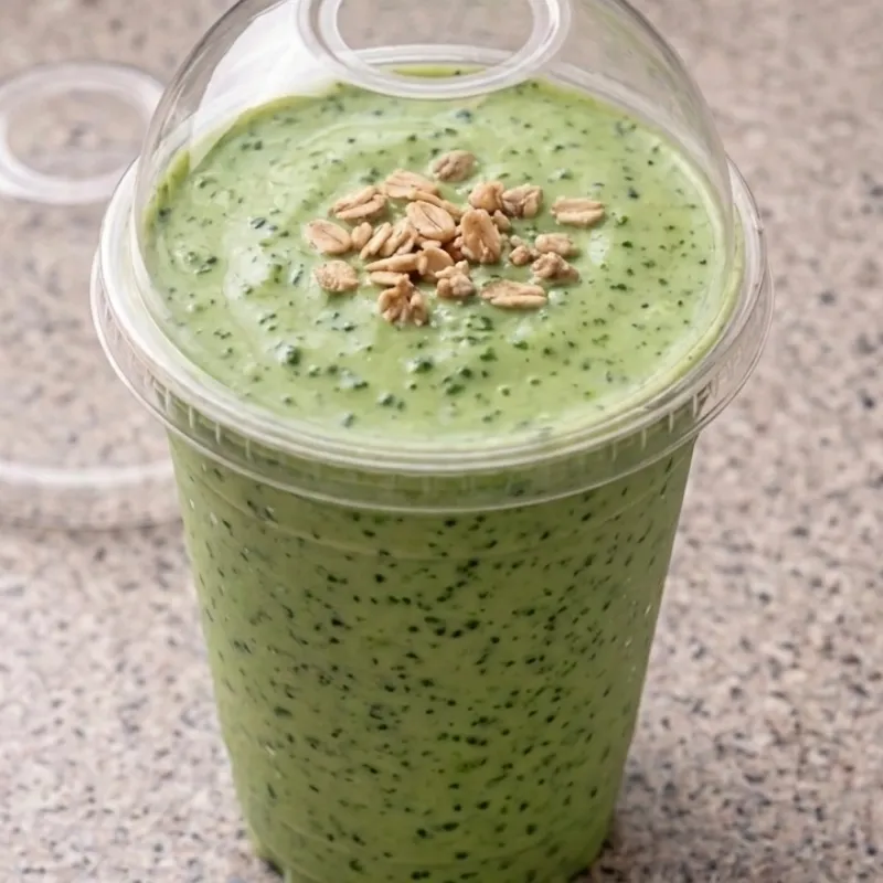 Batido Fit Verde💚 leche, proteína, mantequilla de maní, frutos secos, avena, miel, pepino