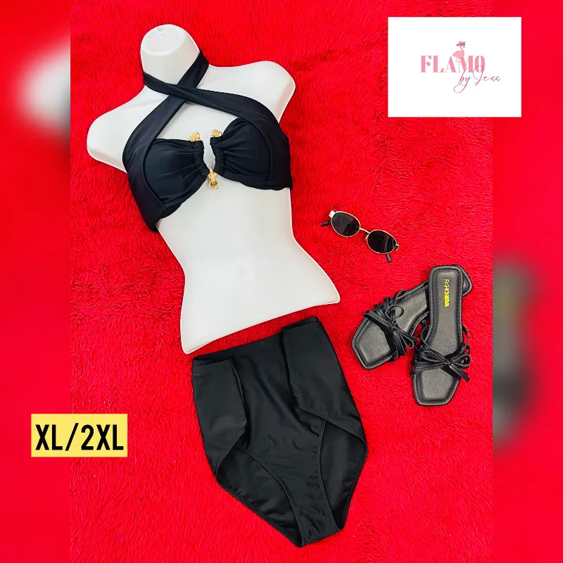 Bikini color negro detalle dorado talla XL/2XL
