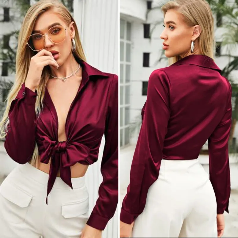 Camisa corta mangas largas rojo burdeos