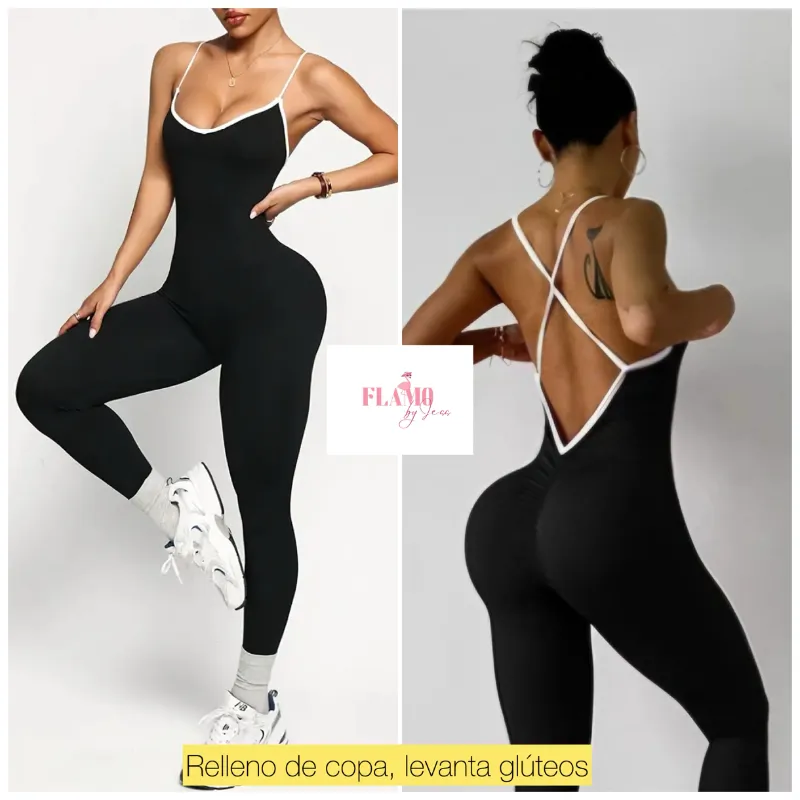 Mono ajustado negro y blanco levanta glúteos escote espalda
