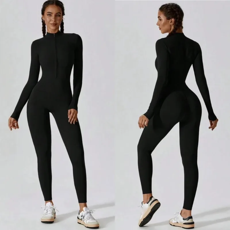 Mono largo mangas largas con ziper color negro