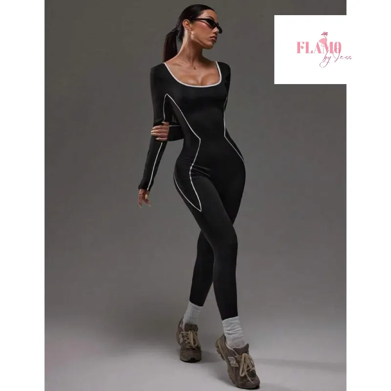 Mono mangas largas negro y blanco ajustado al cuerpo
