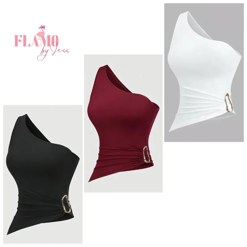 Top asimetrico de un hombro con hebilla dorada