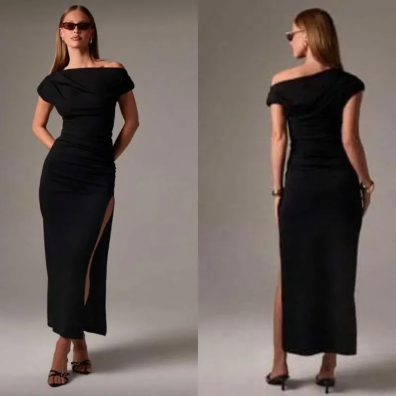 Vestido largo color negro hombro a hombro